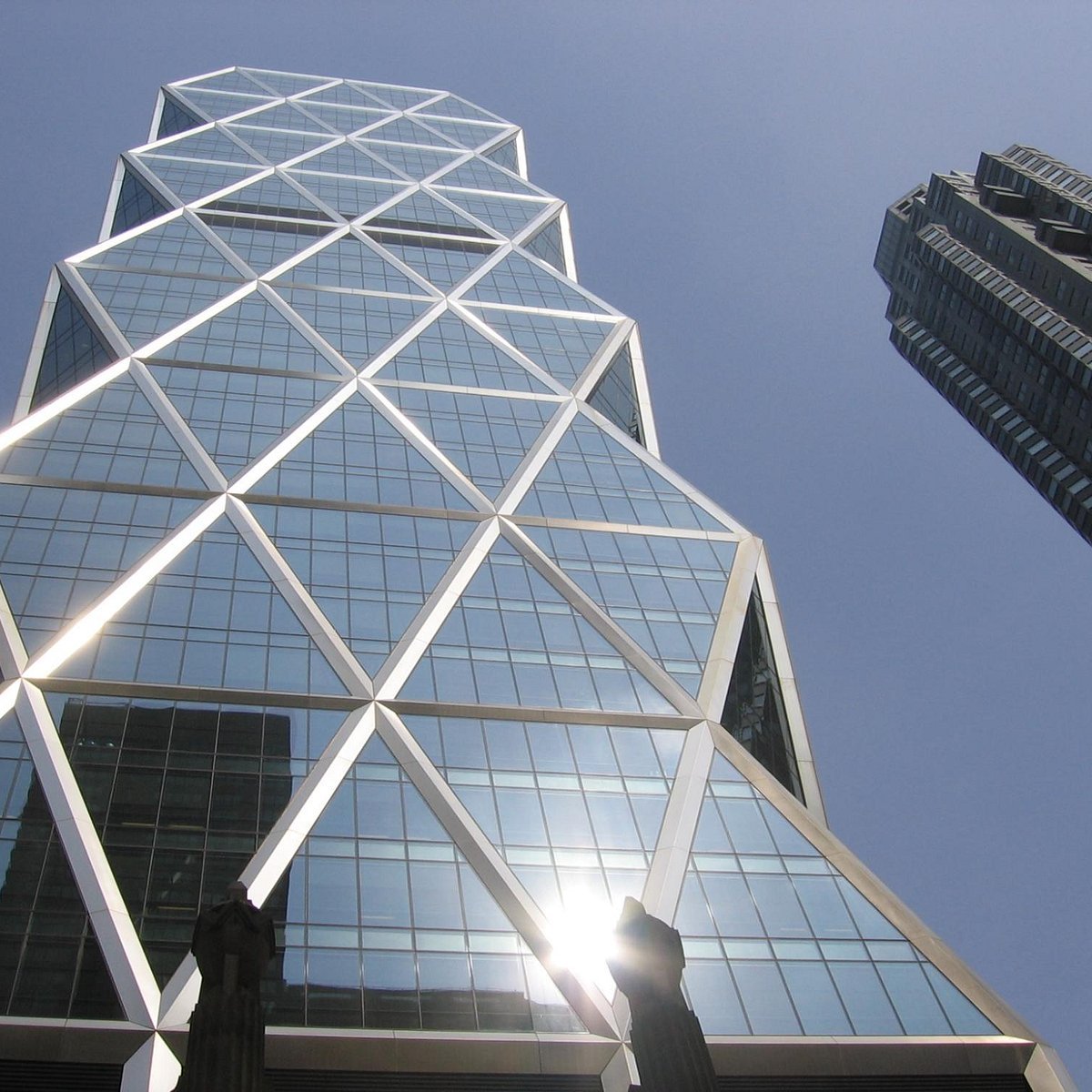 Rising from the historic base of the Hearst Corporation’s headquarters, this glass and steel tower features a diagrid structure, which reduces the need for steel and gives the building a distinctive appearance.