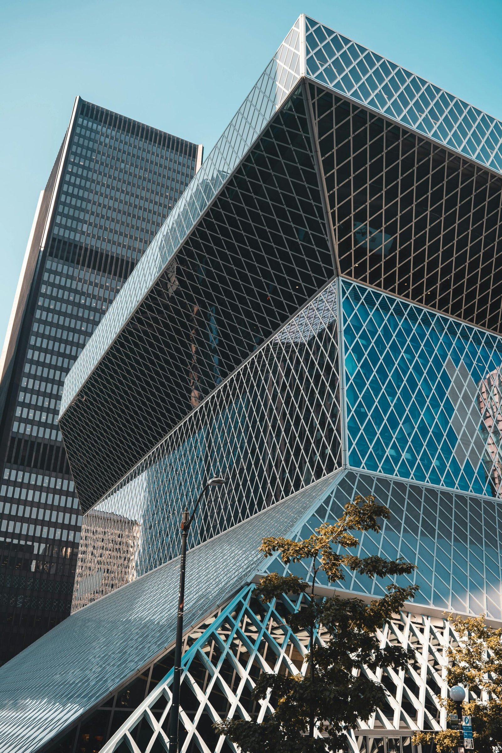 This library’s striking design, with its angular shapes and extensive use of glass, makes it a modern architectural icon, designed to foster community engagement.